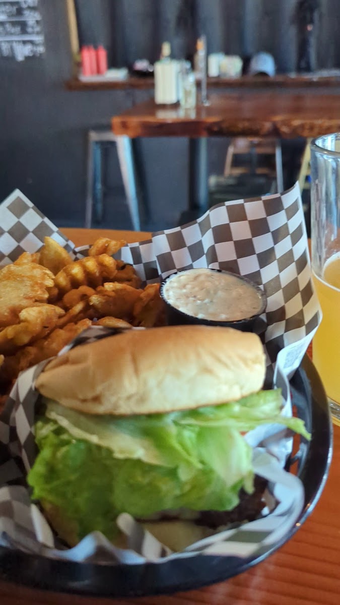 Fun little brewery for a couple of friends looking for some food or beer. The service was amazing, everyone was very kind and helpful. The Keg burger was decent, but I had higher expectations, and $20 is a crazy price tag. My girlfriend said the Mediterranean sandwich was great. DEFINITELY get the waffle fries, the straight cut fries were mediocre, but the waffle fries were seasoned so deliciously.