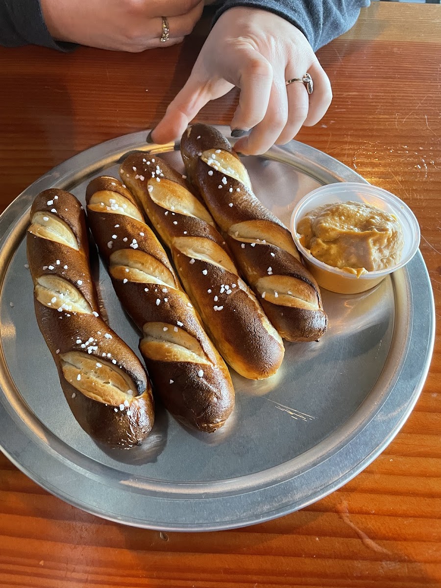Love this place, they always have a great selection of brews. Gotta have my goat cheese parfait every Friday! The food is delicious, the flat breads, pizzas, pretzels. We listened to live music on a Saturday and it was beatuiful. And Taylor, your're great, keep it up!