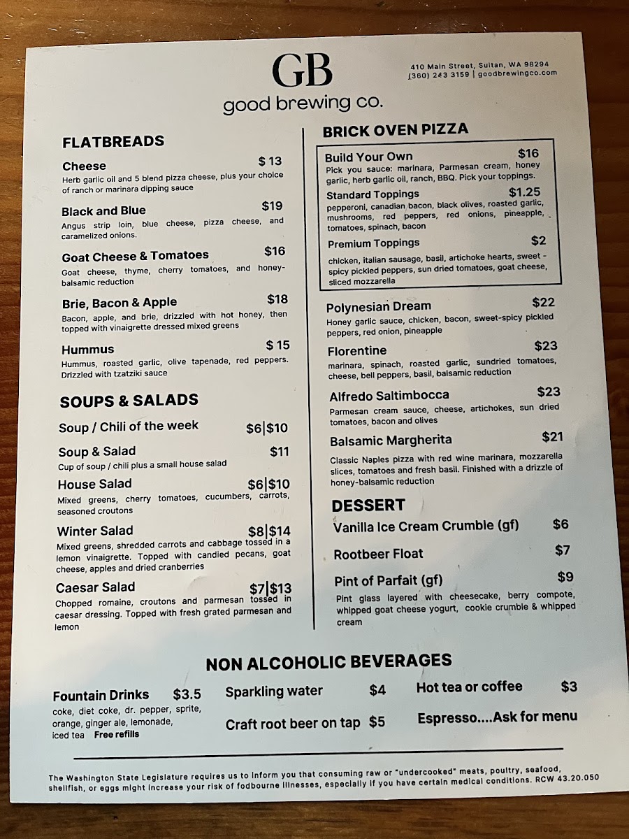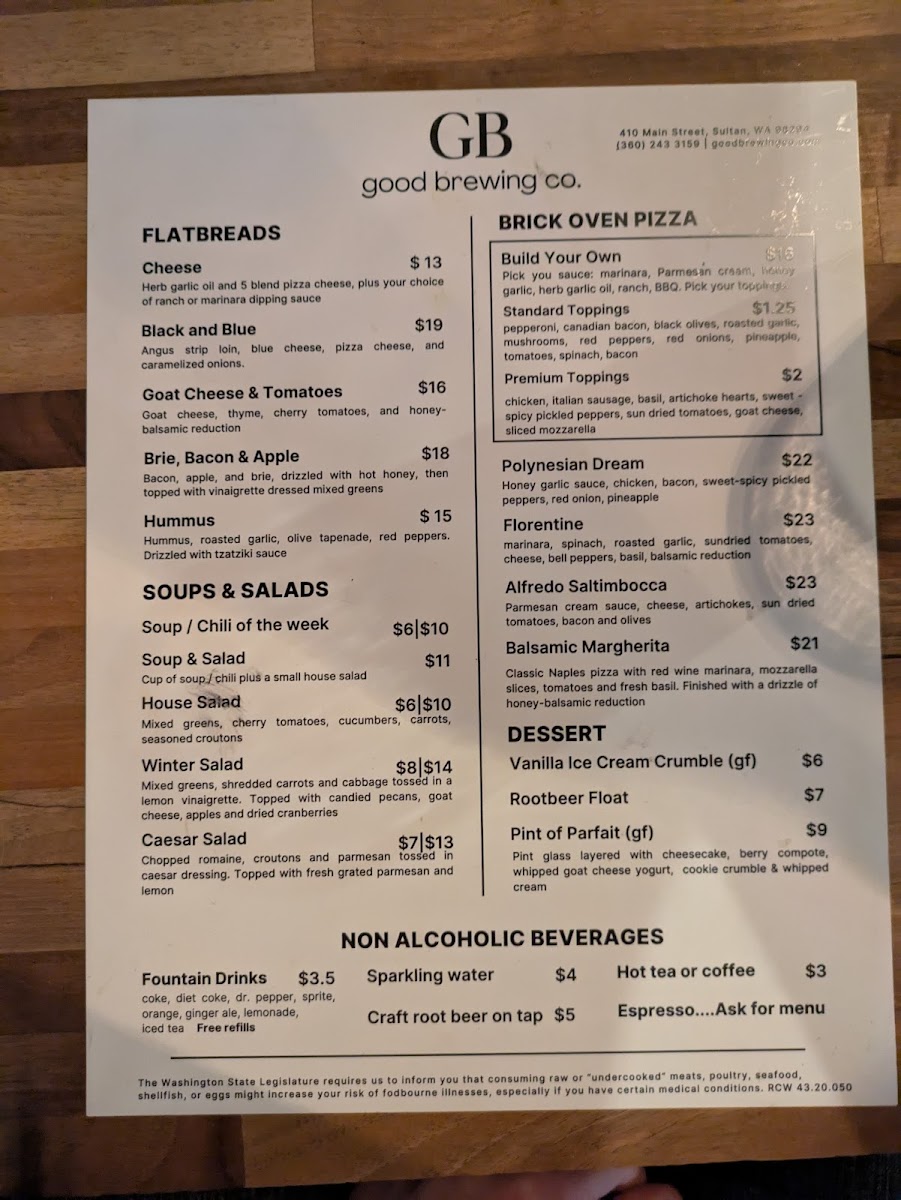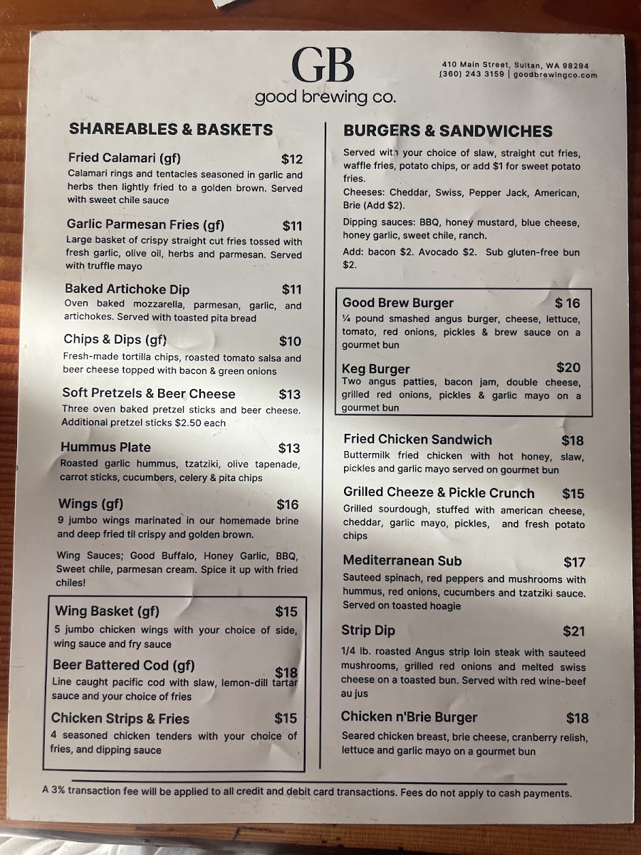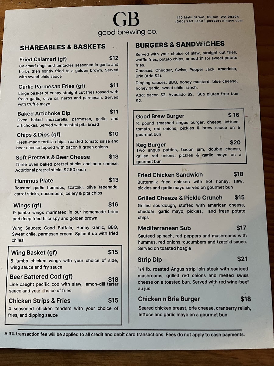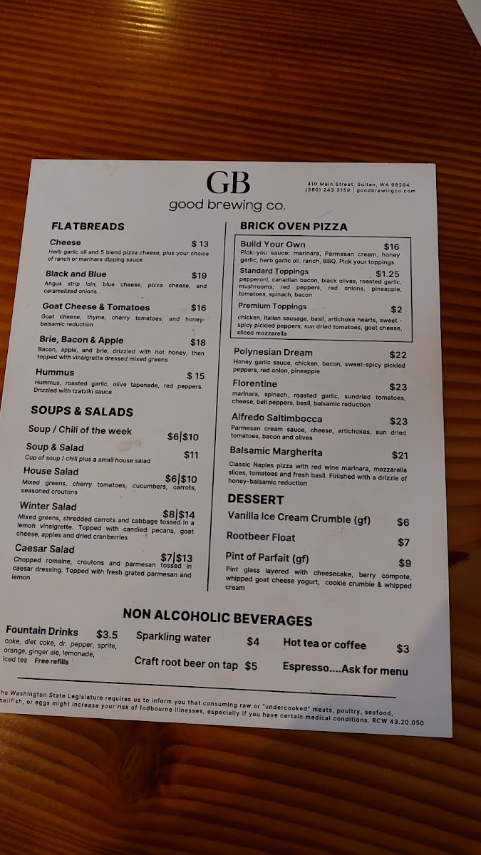 Whether stopping by for a casual lunch, an easy dinner, or to catch up with friends over drinks, the menu fits the friendly, laid-back vibe of Good Brewing Sultan. It’s the kind of place where familiar flavors feel just right and the food pairs naturally with a well-poured pint or a cold brew coffee.